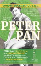 The Gloucester Meetinghouse Foundation is proud to present the original silent movie ‘Peter Pan,’ a 1925 American fantasy-adventure film as part of its Tenth Anniversary Series. It will be narrated by acclaimed actress Lindsay Crouse and accompanied on the pipe organ by maestro Peter Krasinski. This is great entertainment for the whole family during the holidays!